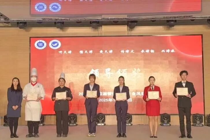活动特别设置专业展示评分与颁奖环节。经过现场观众投票与专业评审综合评定,各专业展示成绩最终揭晓。学院创新设立“津韵传承奖”“津声倾听奖”“津心理解奖”“津情热爱奖”“津文传播奖”“津旅创意奖”六大特色奖项,表彰各专业在文化传承与专业发展中的突出表现。万豪酒店培训经理冯丽君女士受邀登台,为获奖专业代表颁奖。