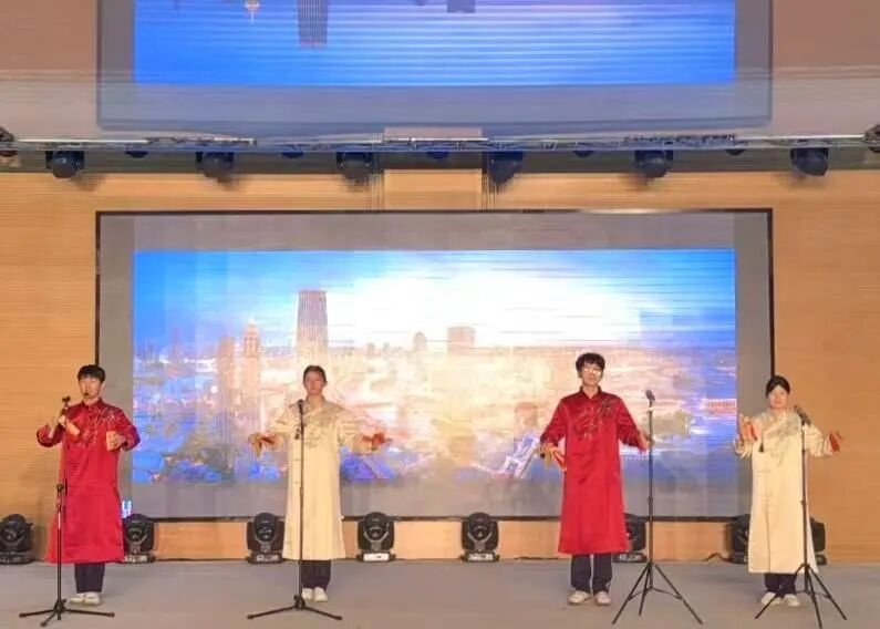 活动中,学院特别展示了校企协同、跨学段育人的成果。天津市微山路中学的学生亦登台表演津味快板《津沽文化》,明快的节奏与真挚的情感,展现了各民族学生对天津文化的认同与热爱,成为大中小思政一体化育人的生动实践。