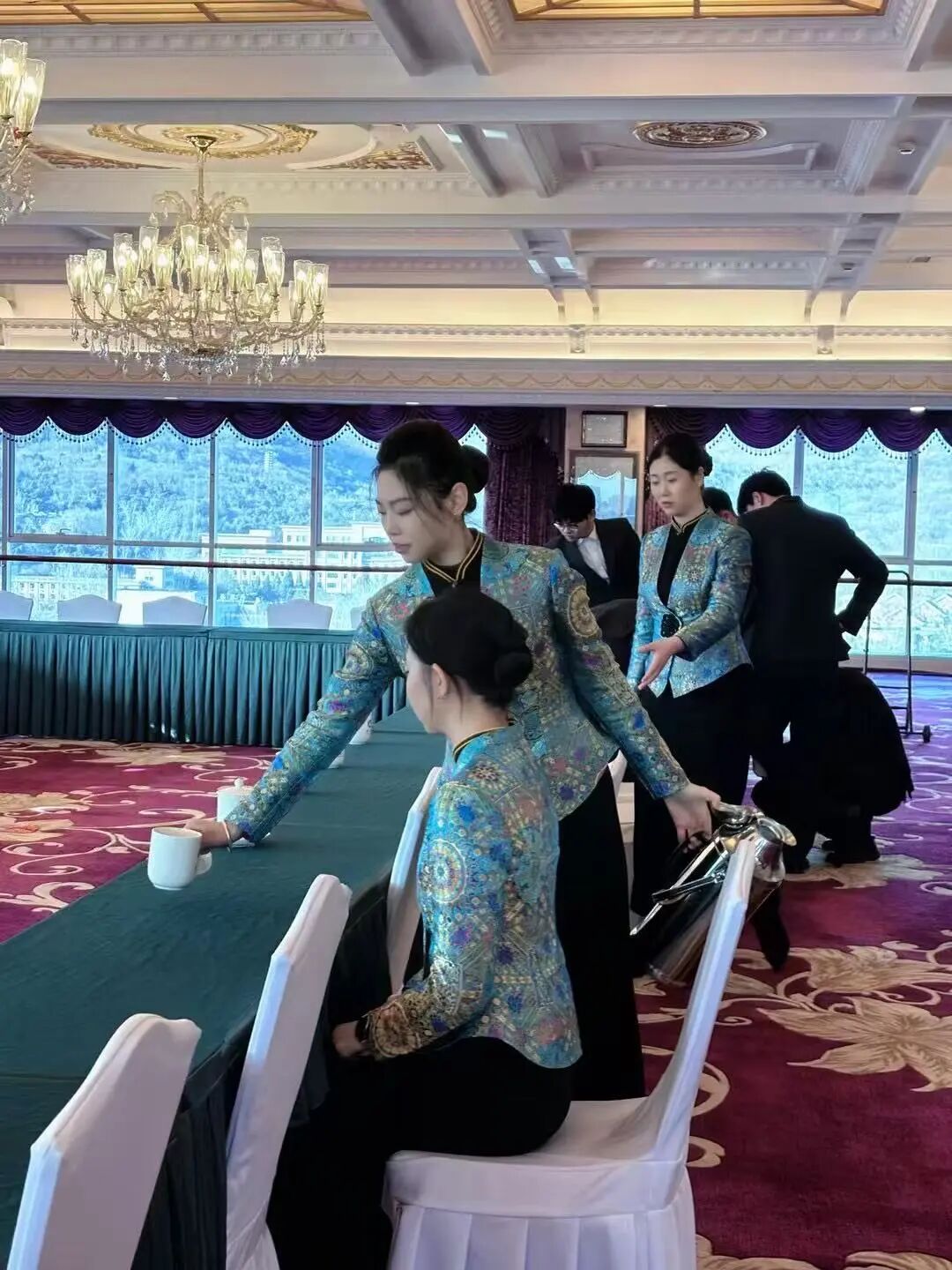 旅游管理学院经过严格遴选和系统培训,组建35名精锐志愿团队进驻两会驻地。全体志愿者以“政治过硬、技能精湛、作风扎实、服务暖心”为准则,清晨整装到岗,深夜坚守岗位;礼仪接待端庄得体,会务保障高效有序,客房服务细致入微。面对各项任务,他们严谨细致、默契配合,以零疏漏、零失误的过硬表现,圆满完成各项服务保障工作,得到与会代表、委员及会务组的高度评价与充分肯定。