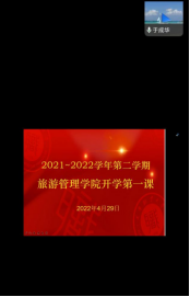 4月29日,旅游管理学院组织开展“2021-2022学年第二学期开学第一课”线上活动,由学院党委书记于成华老师带来《传承冬奥精神,践行使命担当》主题讲座。