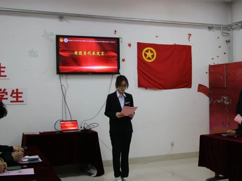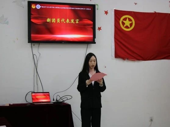 优秀团员代表刘爽向新团员表示了祝贺与勉励,并以饱满的热情阐述了作为共青团员的荣耀与责任。随后,新团员代表申晨曦分享了她加入中国共青团的初衷及对成为一名共青团员的深刻感悟。