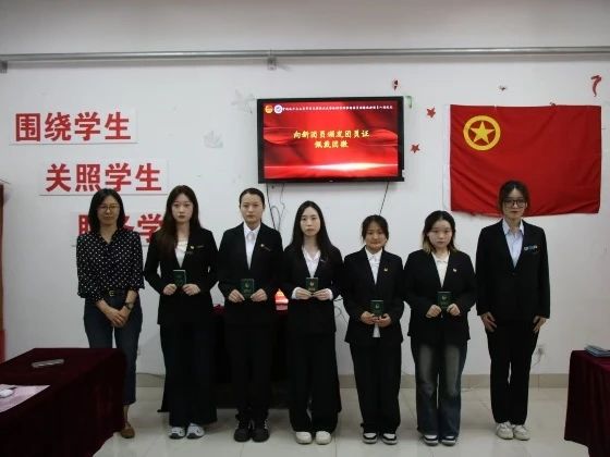 团徽,作为中国共产主义青年团的象征,它不仅仅是一枚普通的徽章或纪念章。它承载着共青团员的荣誉与责任,是每一位团员肩负使命的标志。在庄严的仪式上,由学院团委副书记李杰老师为新成员颁发团徽徽章和团员证。这一过程不仅加深了同学们对团徽意义的理解,也标志着他们正式承担起作为一名共青团员的重任。