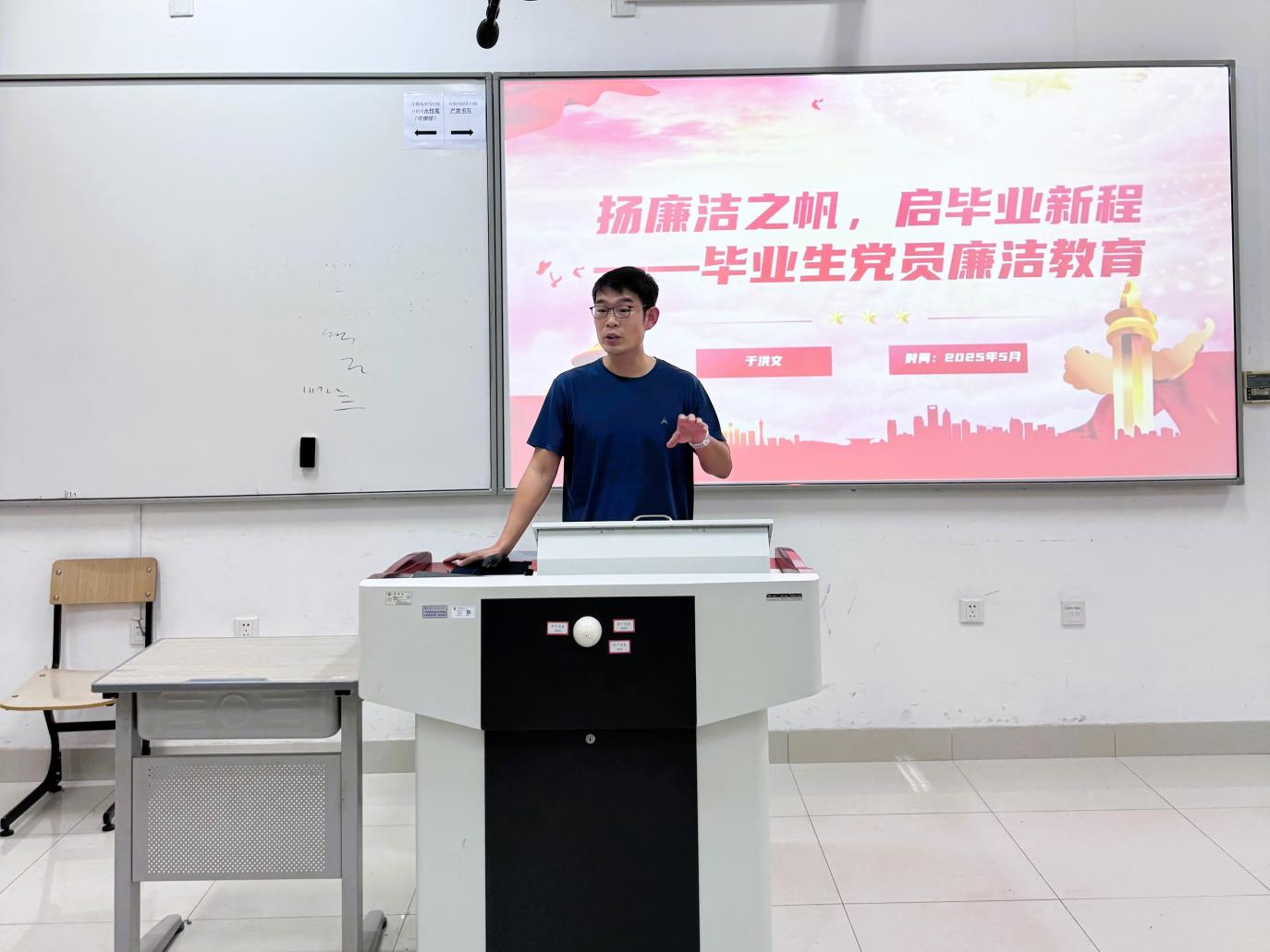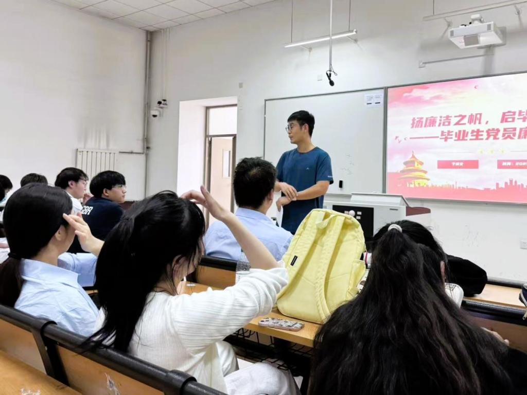 为进一步加强毕业生党员的廉洁自律意识,引导其在新的人生征程中坚守初心使命,旅游学院学生工作党支部于近日开展“五彩毕业季”系列活动之毕业生党员廉洁教育专题党课。本次党课由学生工作党支部书记于洪文主讲,支部学生党员和入党积极分子参加。