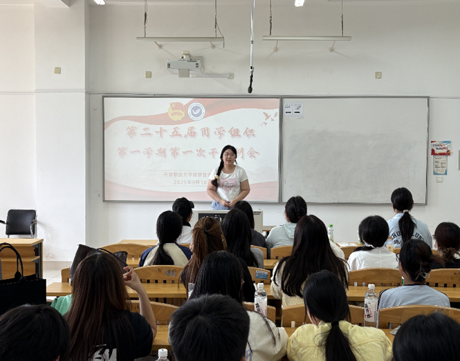 随后,白老师围绕干部素养和作风建设对团学干部提出明确期望。他强调“细节见真章,小事见作风”,要求大家将“守时高效”融入日常,以准时参会、按时完成任务体现对他人的尊重,为各项工作顺利推进奠定基础;同时要注重言行细节,以着装得体、举止端庄的外在风貌,展现团学干部应有的精神气质与内在修养;更要主动担当、找准定位,培养“察事于先”的敏锐度,不断提升解决问题的能力,以真诚态度和务实行动赢得师生广泛认可。白老师的讲话紧扣实际、语重心长,为团学干部进一步提升自我、开展工作提供了清晰指引。