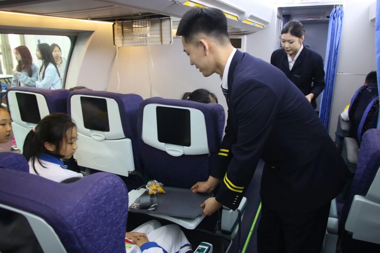 此次主题培训,是依托旅游管理学院的天津市科普基地——天职数字化餐旅文化科普基地、中华人民共和国职业技能大赛国赛精选餐厅服务赛项天津市集训基地等实训体系的综合展现。调酒师精湛的技艺将色彩与味道完美融合,茶艺师优雅的动作诠释着茶文化的深邃,天津市技能大师工作室——刘辉技能大师工作室中一件件匠心独运的作品,无不彰显着职业风采;在餐厅服务体验中,同学们积极参与折餐巾活动,从生疏到熟练,在动手实践中体会职业技能的乐趣与挑战;大家步入客舱实训室,模拟飞机客舱场景,在实践中触摸职业脉搏。