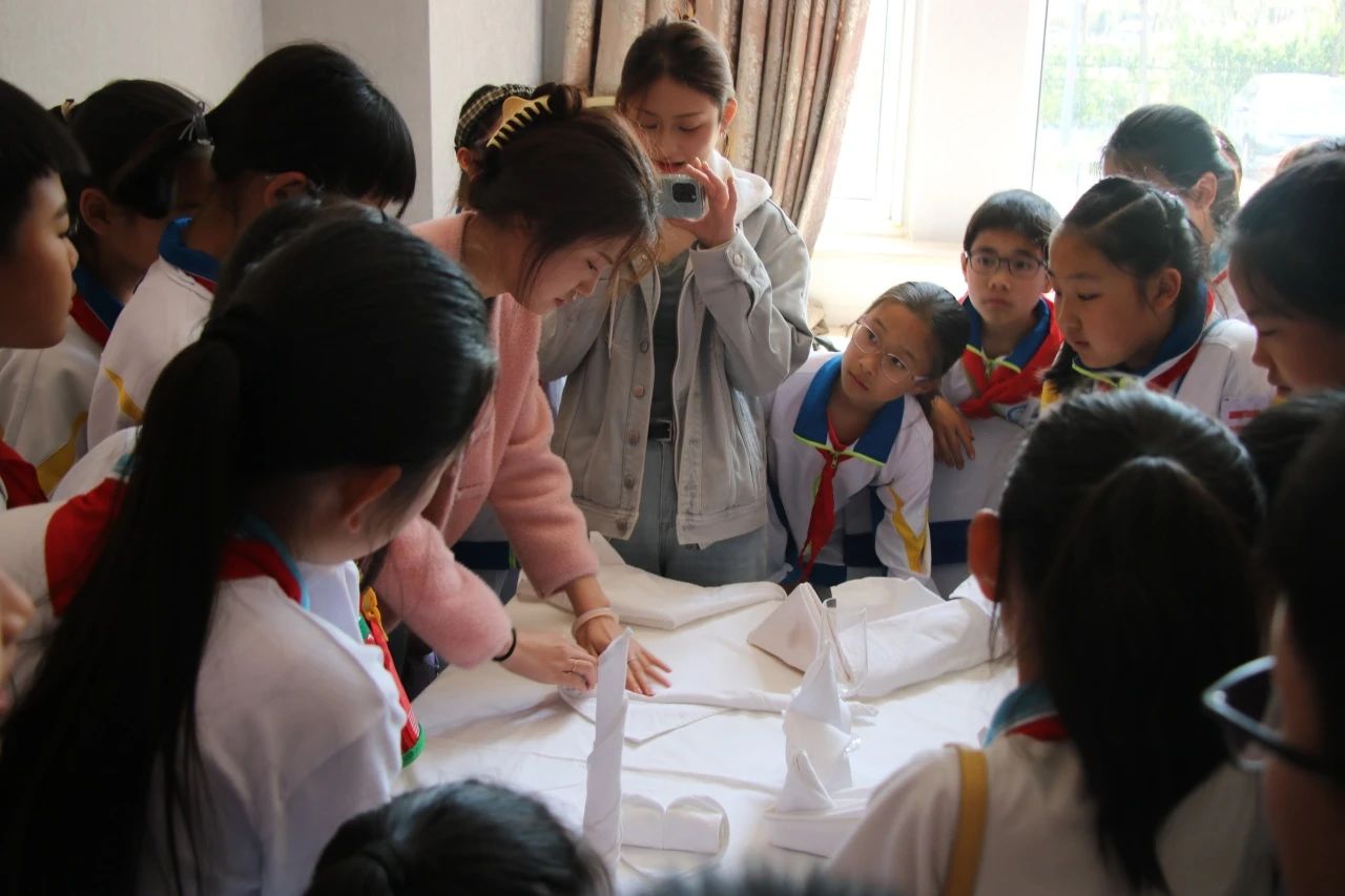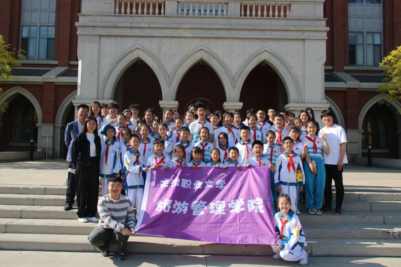 在优化升级我校社会服务功能的背景下,基于服务我市中小学生职业启蒙教育,融合思政育人与实践能力培养,旅游管理学院于2025年4月22日为天津师范大学第二附属小学39名学生进行了以传统历史文化和大国工匠精神为核心的“行走的思政课”主题培训,由李虹飞院长指导,陶静、李杰两位老师带队23旅管2班同学进行培训讲解和导引服务。
