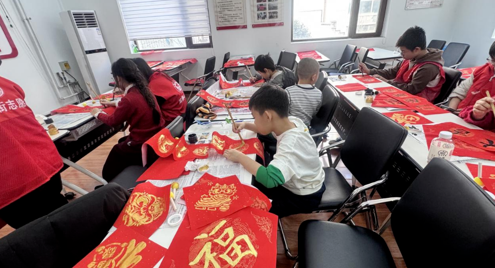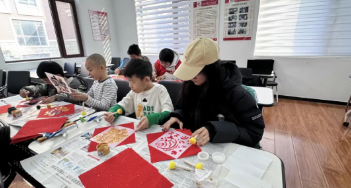 李婧萱同学在社区指导小朋友开展福字拓印与彩绘活动,陪伴小朋友完成课后作业、解答学科疑问,组织观看红色主题微电影、乐高搭建等活动,解决双职工家庭后顾之忧。