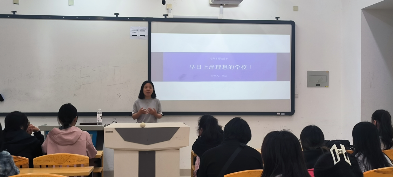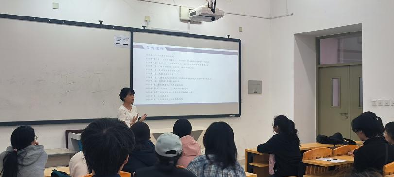 甄伟丹老师首先介绍了学院近三年专升本的具体情况,并建议同学们结合自身实际科学进行职业生涯规划,避免盲目跟风。